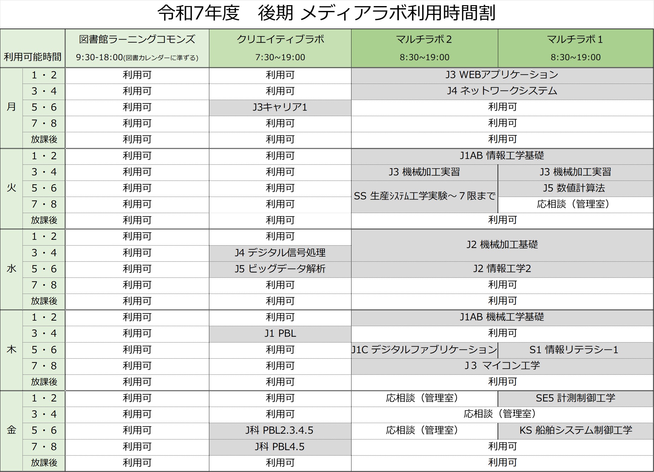 - 2025/9/26 メディアラボ利用時間表を更新しました